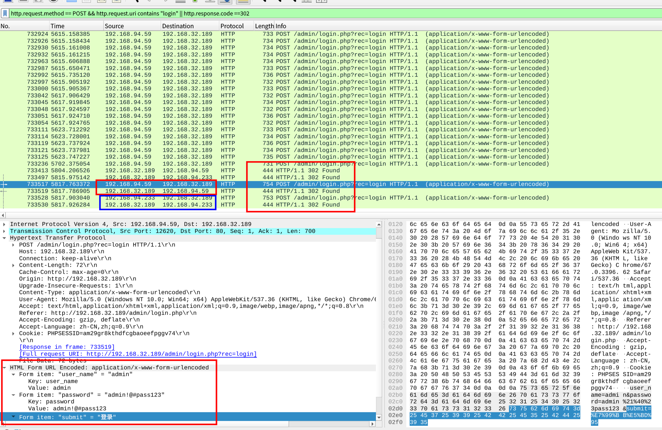 综合一起查,直接拖到最下面看返回有302的前一个POST包